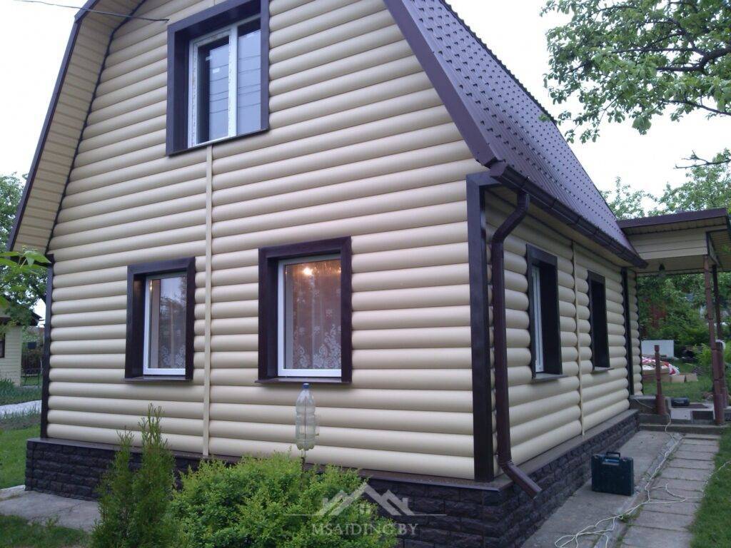 Имитация бревенчатой постройки может быть выполнена из пластика или из металла, что кардинально изменяет эксплуатационные свойства обшивки.