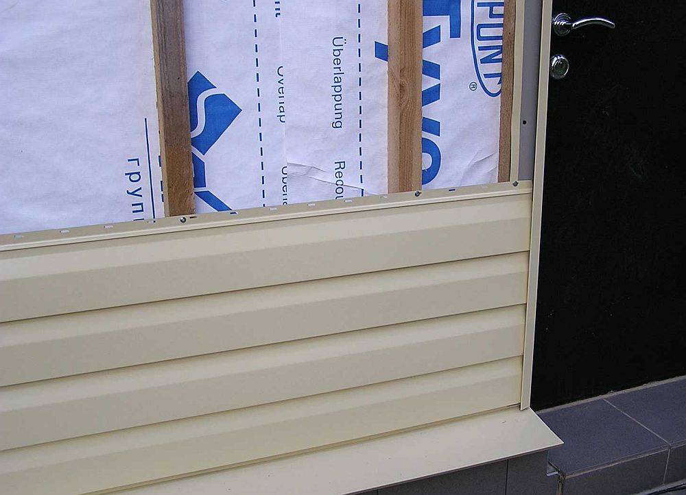 Вокруг проемов окон и дверей, в местах установки светильников и подвешивания других элементов, на всех углах строения, по верху и низу обшивки устраивается дополнительная обрешетка. Рейка располагается вертикально, горизонтальных распорок не ставится – они приведут к явному ухудшению вентиляции подсайдингового пространства.