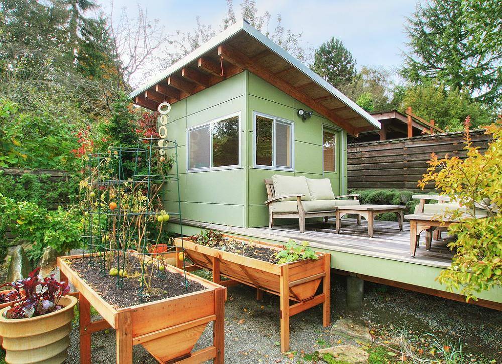 Если в приоритете сбор урожая, то минимум две трети территории придется отдать под огород, сад и теплицы. Обязательно продумай хозяйственную постройку для хранения удобрений, инструментов и других мелочей. А в качестве зоны отдыха оставь маленькую беседку или несколько уютных скамеек под навесом.