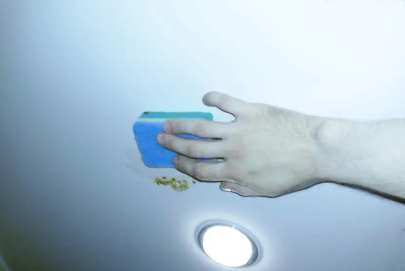 Губку смачивают в моющем составе и плавными движениями отмывают грязь