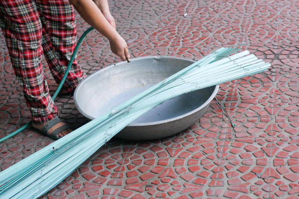 Каждую полосу скрутите в рулончик, опустите в мыльную воду и оставьте на некоторое время. Не следует тереть ламели руками или щеткой. Увидев, что грязь от полос отошла, сполосните их и, не выжимая, повесьте обратно и вставьте груза.