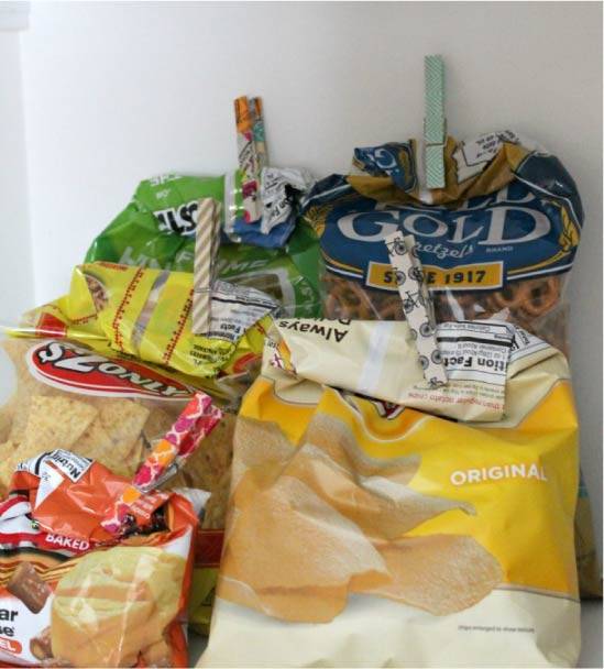 Откроем вам маленький лайфхак — магниты из прищепок могут не только хранить списки и счета, но и зажимать пакеты с едой как показано на фото ниже. Получается очень удобно – снял с холодильника прищепку и тут же зафиксировал ей початый пакет.