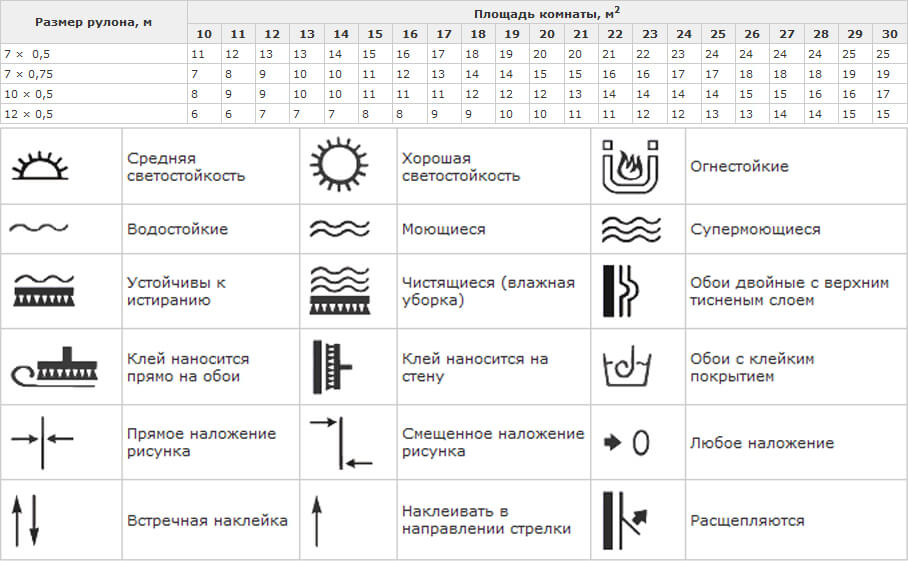 Данные о длине рулона, высоте рапорта и смещения можно узнать по маркировке, указанной производителем на упаковке.