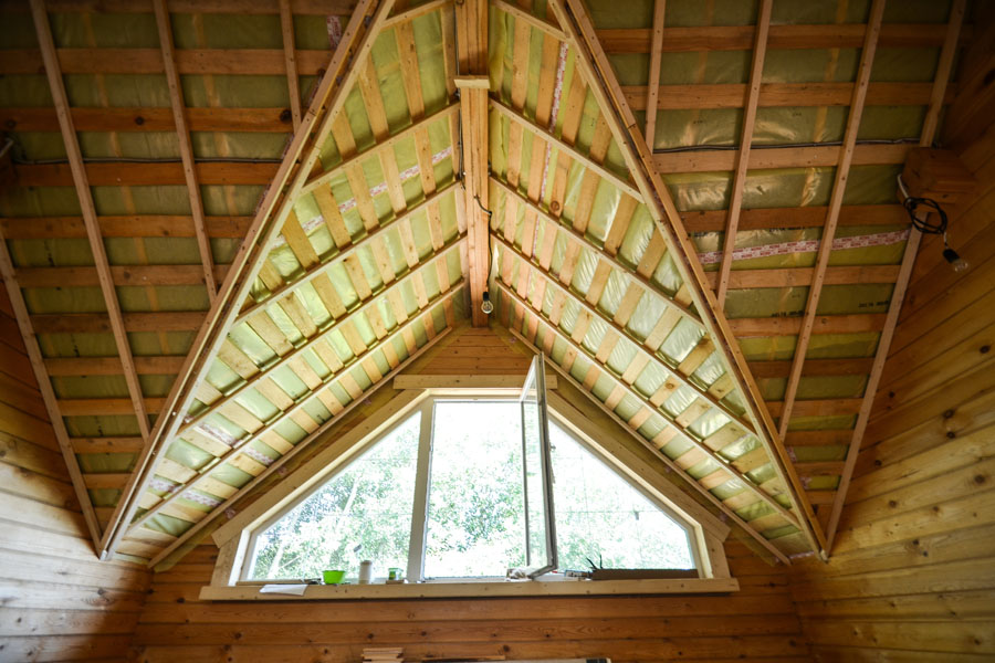 Укройте обрешетку гидроизоляционным материалом (полиэтиленовая пленка, крепится строительным степлером), уложите в ячейки утеплитель (если это требуется, оптимальный материал – минеральная вата, укладывайте плотно, без зазоров), а затем укройте теплоизоляционный слой пароизоляционным материалом (крепите к обрешетке строительным степлером).