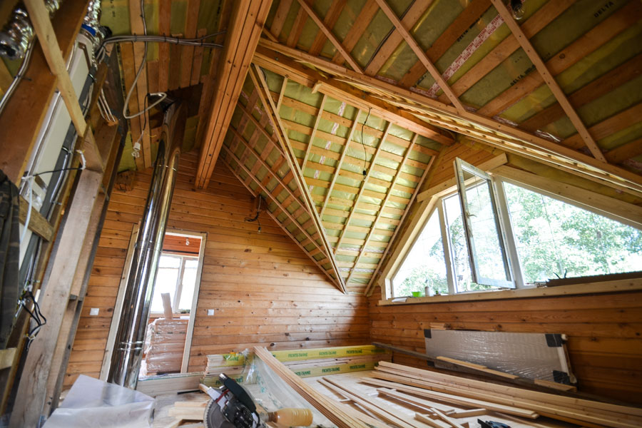 - В деревянных домах между вертикальными рейками каркаса, полом и потолком оставляйте запас 2-3 см. Это связано с постоянной усадкой деревянных построек.