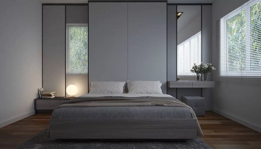 Но существенно помнить, что спальня, в которую не проникает свет из окон будет мрачная и не может существовать по последующим факторам: