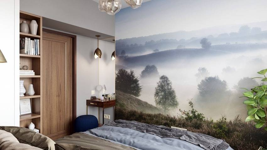 Другой хороший вариант — фотообои, способные добавить пространству глубины.