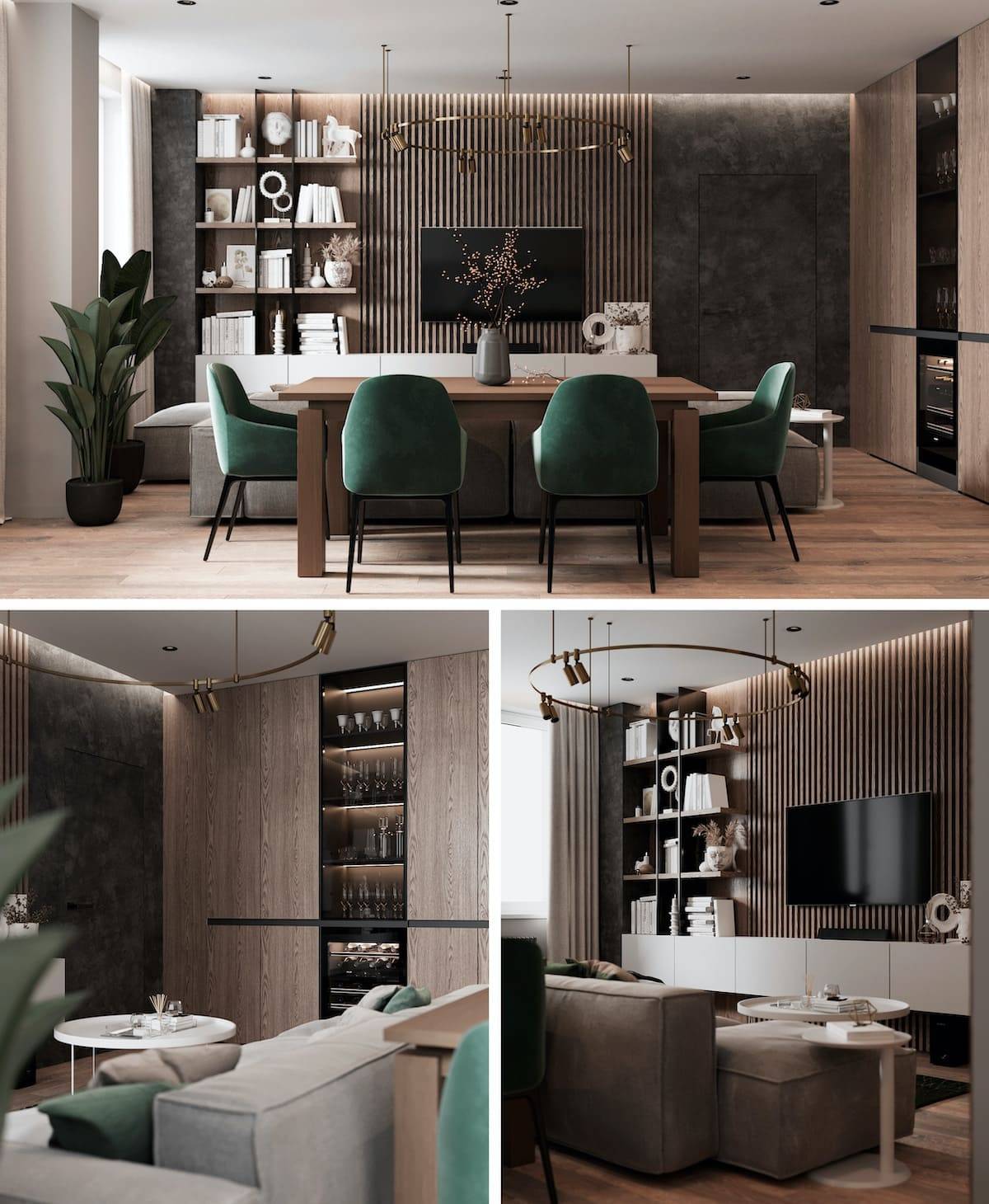 Гостиная – место встреч и проведения любых праздничных мероприятий. Здесь хозяин квартиры проводит большую часть своего времени. Обычно они просторные по площади, со свободной от мебели центральной частью.