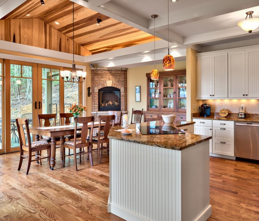 В этом случае особенно важно сохранить свободу и визуально расширить пространство. Именно в доме можно позволить себе перенос обеденной зоны в столовую или гостиную