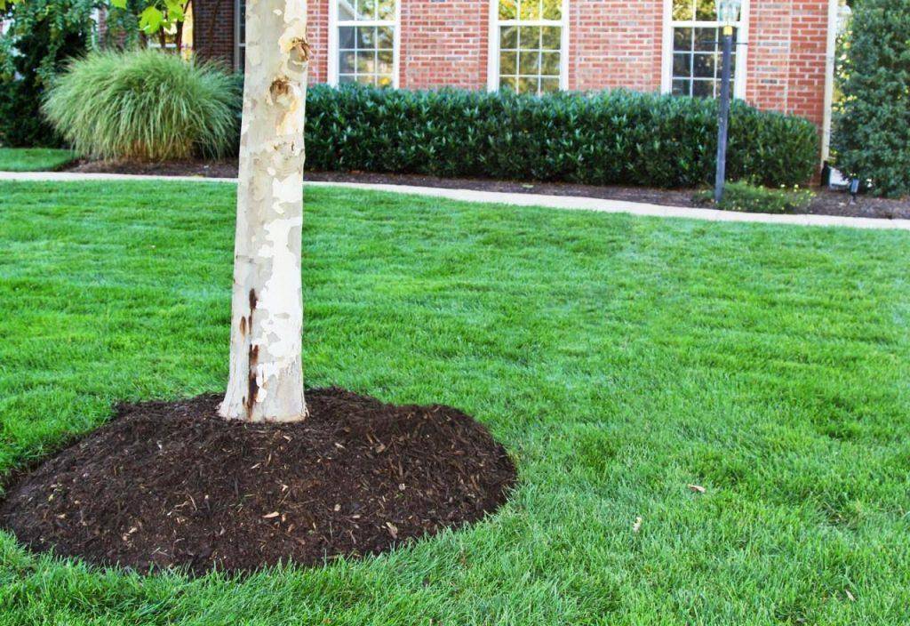 Можно создать под деревом своего рода газон. Для этого туда можно высадить любые специальные газонные культуры. Стоит учитывать, что молодые деревья такой конкуренции могут не вынести, потому что через плотный слой корневой системы любой травы довольно сложно проходит воздух к корням растения.
