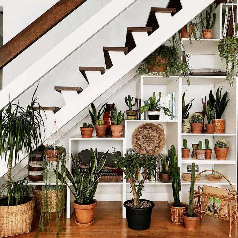 Успокаивающее влияние живой природы прямо в доме – мечта многих людей. В личном здании можно организовать уютный живой уголок прямо под лестницей, чтобы уменьшить расход полезной площади и риск несчастного случая.