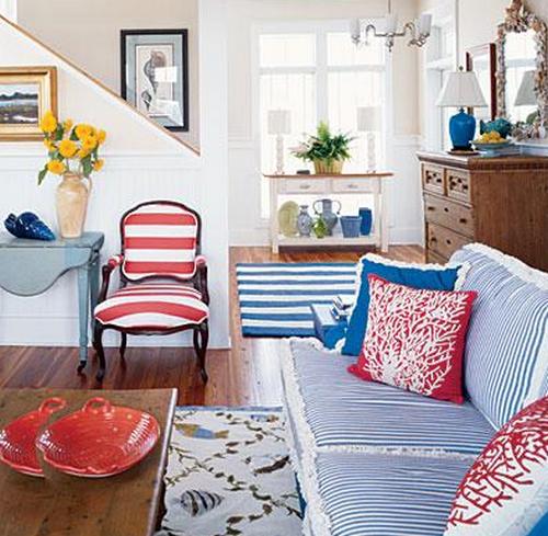 - Летом возьмите плетенные корзинки и наполните их яблоками и ягодами, добавьте морских мотивов в ванной и на кухне – хорошее настроение будет гарантировано.