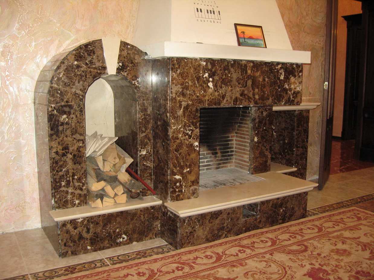 Мрамором можно отделывать только камины из кирпича, газобетона или пенобетона. К выбору облицовочного камня необходимо подходить очень ответственно