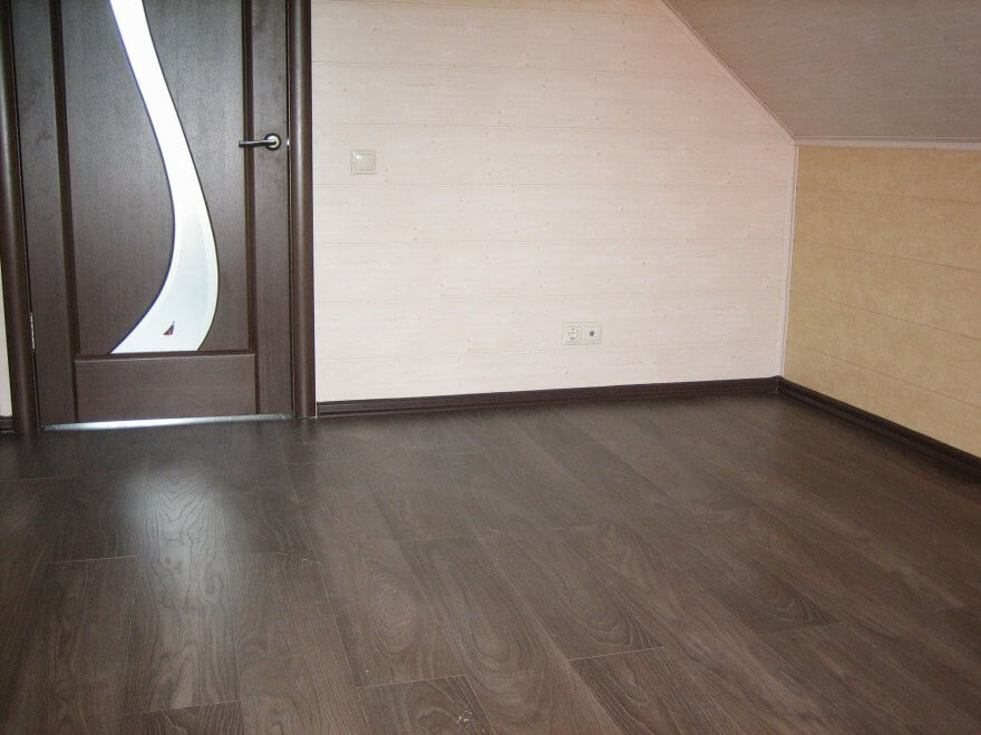 - Плинтуса можно подбирать как под оттенок пола, так и под дверь.