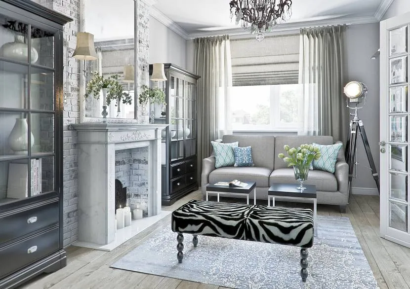 Серый с бирюзойИсточник dizajn-gostinoj.com