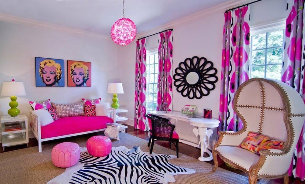 Нежные розовые оттенки делают комнату мягкой и иногда даже инфантильной, поэтому часто используются в женских интерьерах. К холодному розовому подходит бежевый, фиолетовый, изумрудный и голубой. А к теплым тонам — белый, бирюзовый, зеленый и кирпичный.