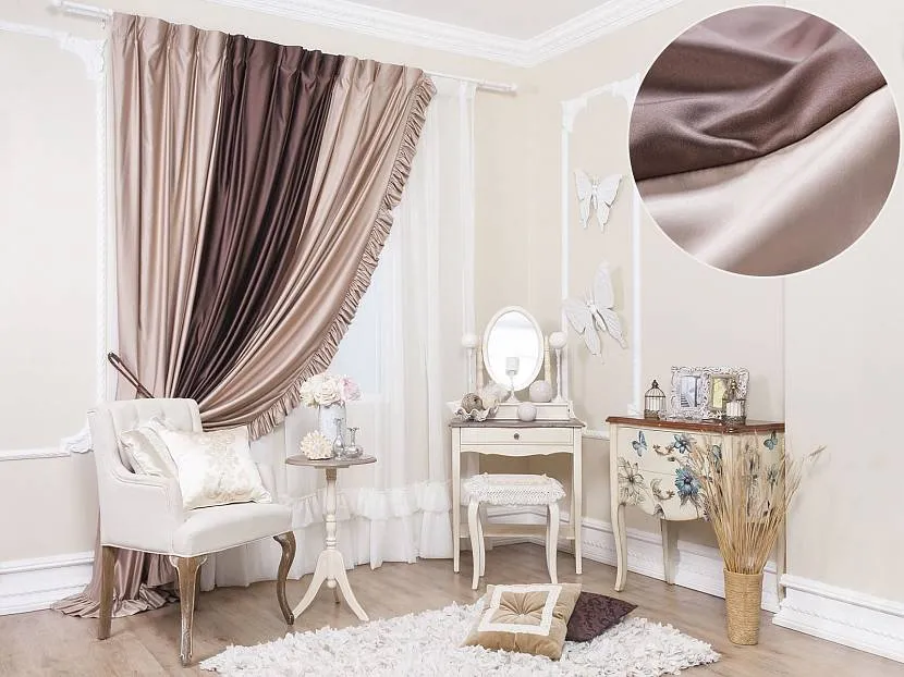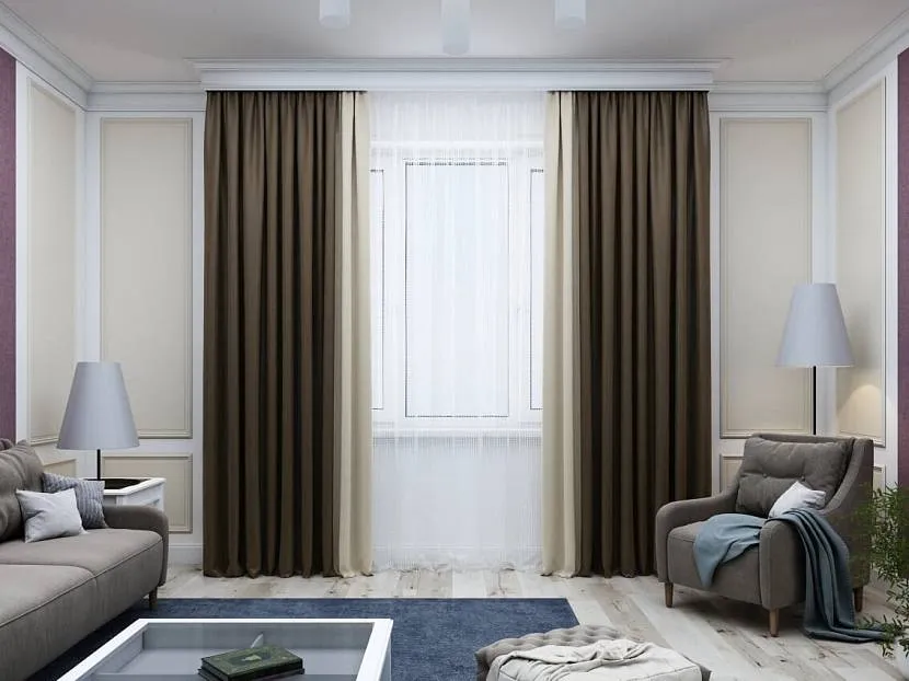 Комбинация штор в бежево-коричневых тонахИсточник decorationinfo.ru/