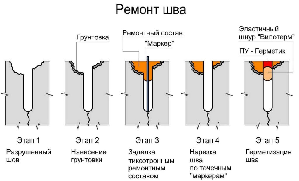 - Заделка трещин и щелей с помощью ремонтного состава или эпоксидной краски, смешанной с кварцевым песком.