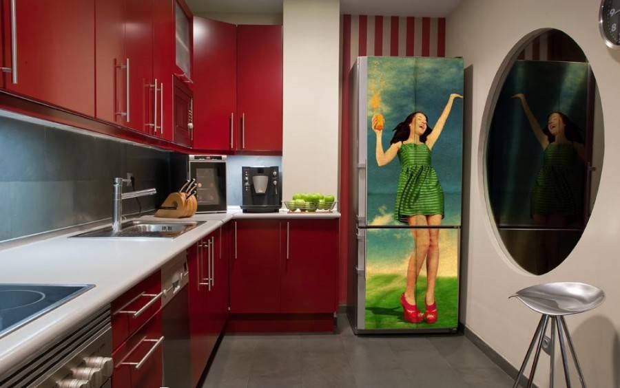 Чтобы быстро и оригинально изменить внешний вид холодильника, можно использовать наклейки. Наклейки предлагаются в широком ассортименте: от мультяшных героев до строгих однотонных пленок-самоклеек.