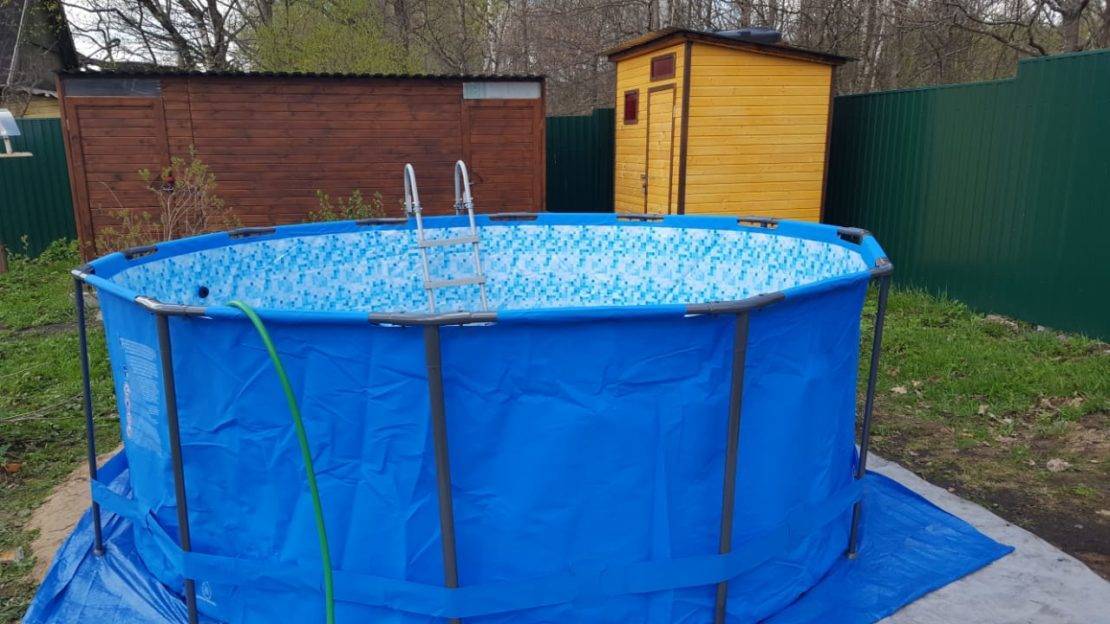 Установка каркасного бассейна на даче своими руками проходит в несколько этапов: