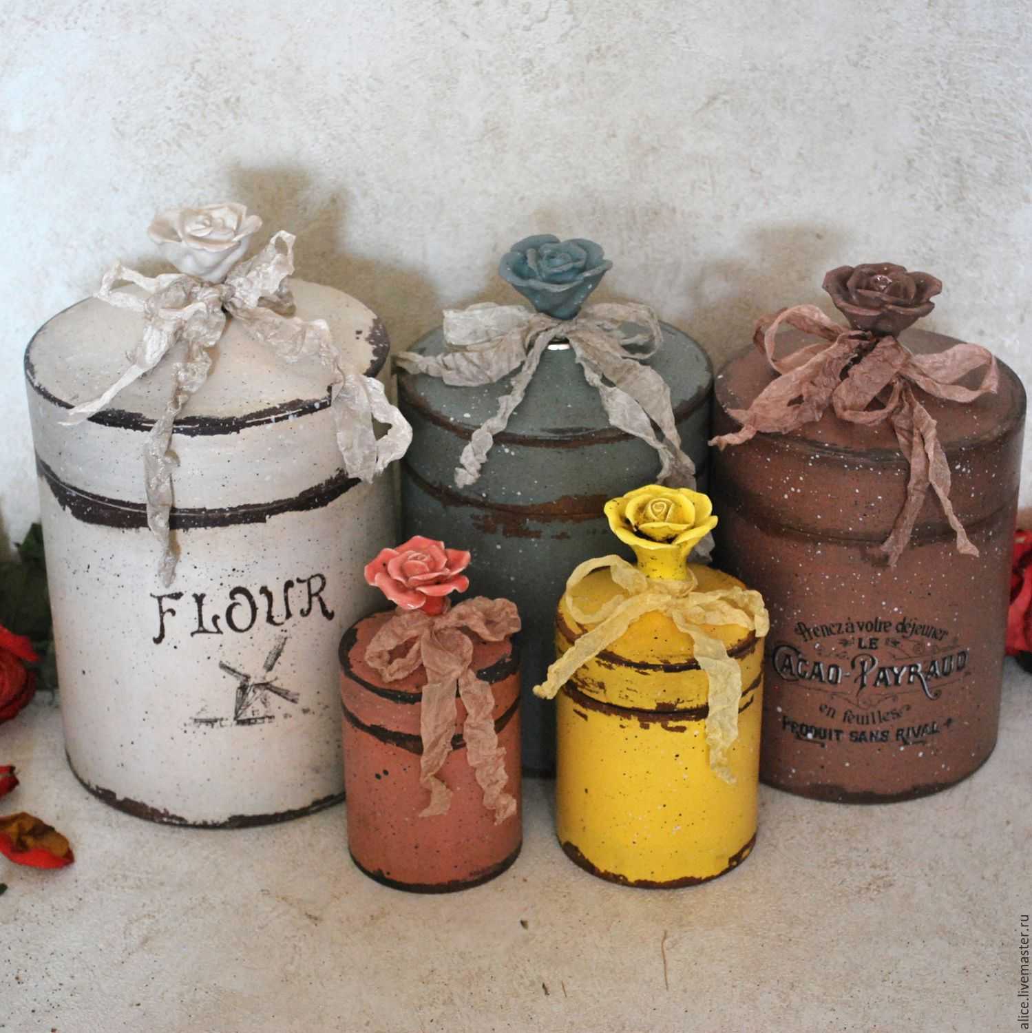 Вот такие красивые и функциональные аксессуары для кухни можно сделать в технике декупаж.