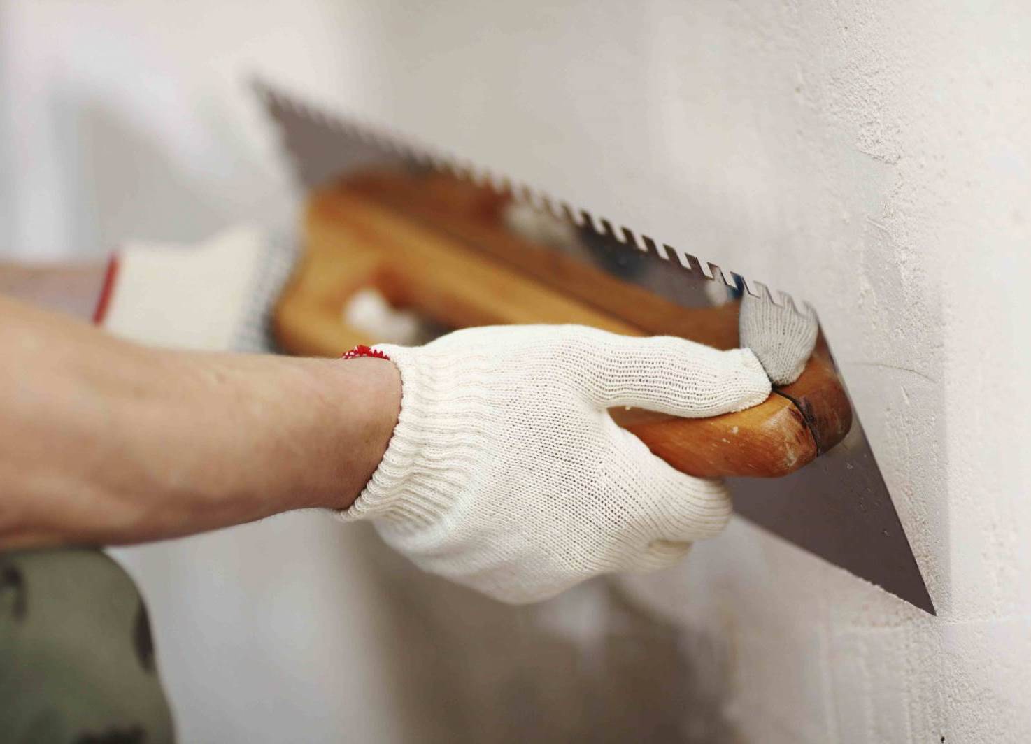 - Чем меньше раствора остается на шпателе, тем сильнее наклоняется инструмент к стене.