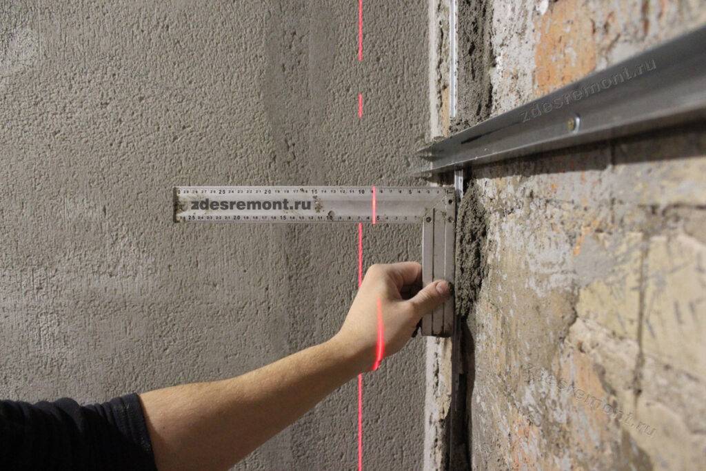 - С помощью правила найти самый выпирающий участок стены, чтобы отталкиваться от него при определении будущей плоскости.