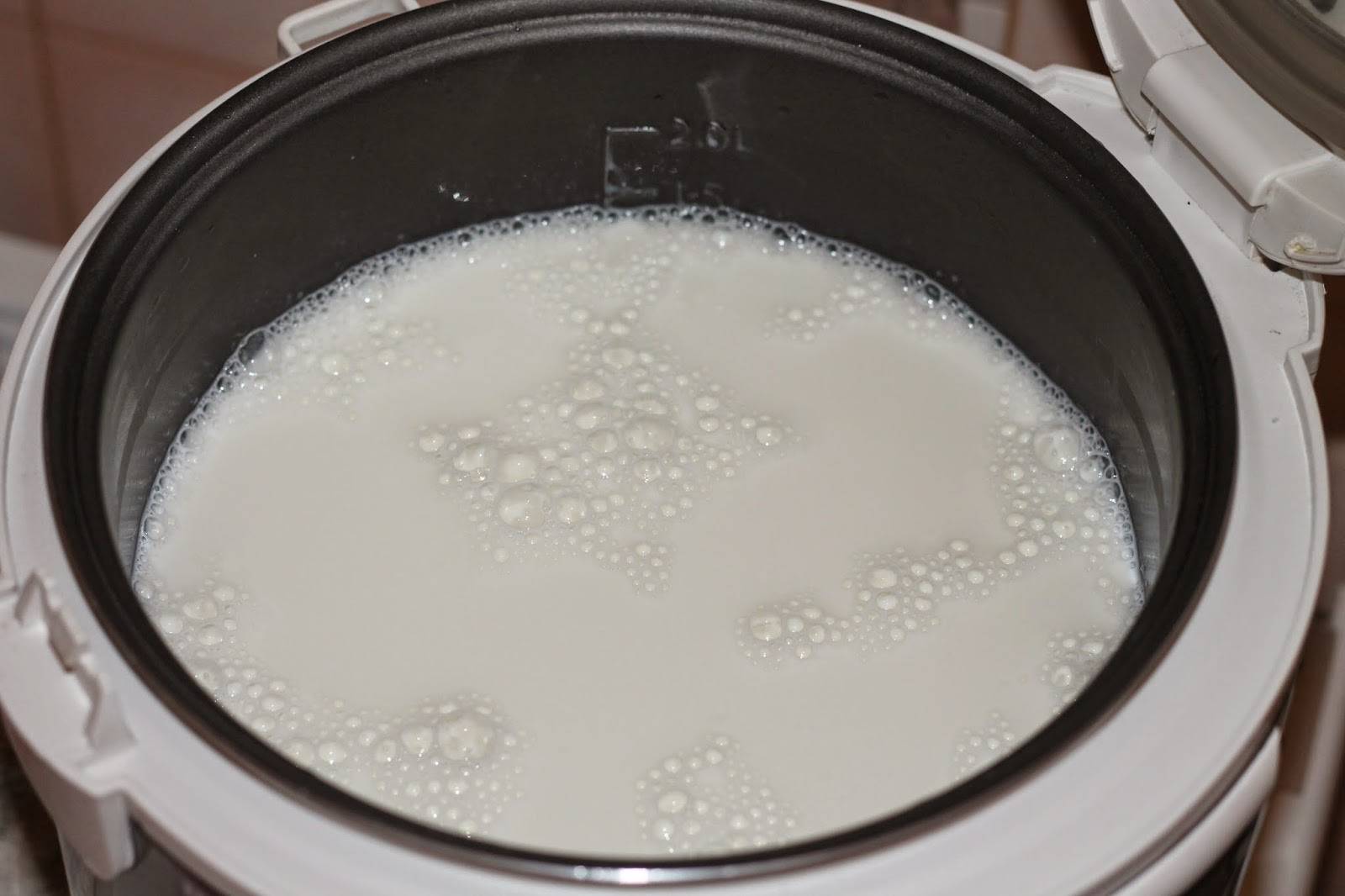 - влить полученную жидкость в чашу мультиварки и включить функцию «йогурт», такая есть во многих современных электронных чудо-горшках; если же такой функции у вас не имеется, тогда нажимаете «подогрев».