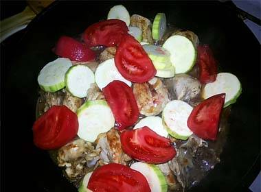 - Залейте смесью курицу и овощи. Готовьте еще 20 минут.