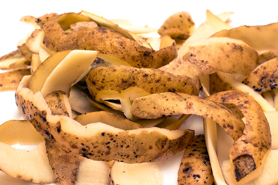 - Картофельные очистки. Сначала их нужно подготовить, то есть как следует просушить, сложить в ведро и выдержать несколько дней в сухом виде. Затем ими можно прочищать дымоход, постепенно добавляя в топку. При этом необходимо учитывать размеры самой печи. При горении шкурки начинают выделять крахмал, негативно воздействующий на сажу. Черный налет отваливается от стенок постепенно, падает в саму печь, оседает в зольнике, который далее нужно просто очистить, убрав золу.