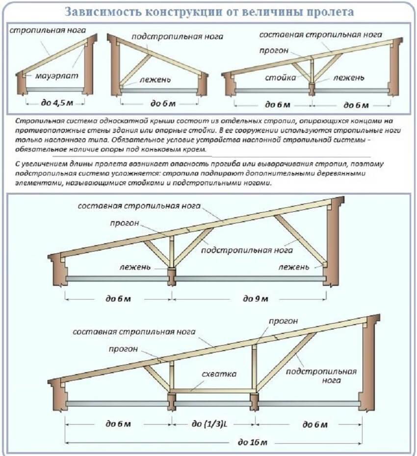 Стропильная система односкатной крыши ‒ Подбор сечения