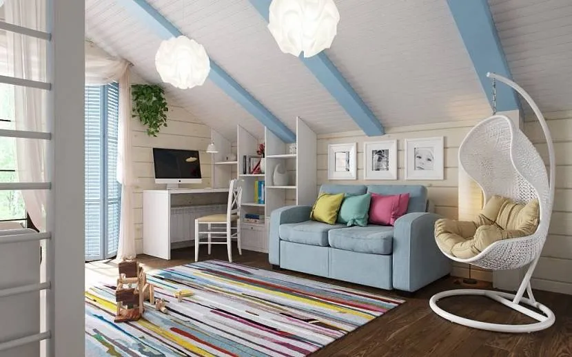 Самое простое решение для добавления еще одной-двух комнат – облагораживание чердака. Если позволяет форма крыши, наверху можно разместить детскую, гостиную, спальню.