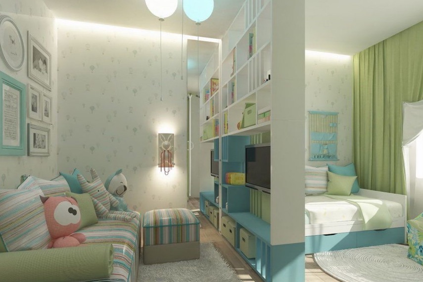Чаще других комнат зонированию подвергают детскую комнату. Кроме того в ней выделяют одновременно несколько функциональных участков: