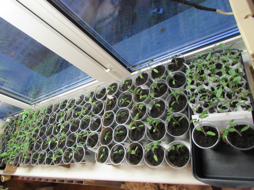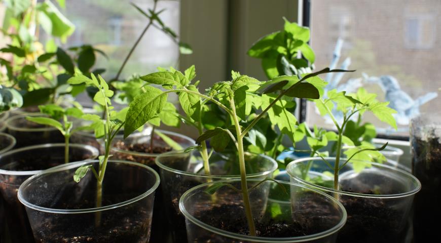 Рассада томатов на подоконнике в апреле