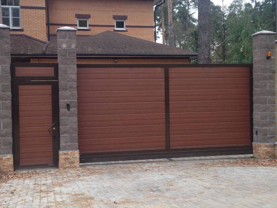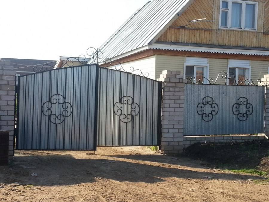 Фасад распашных ворот из профнастила