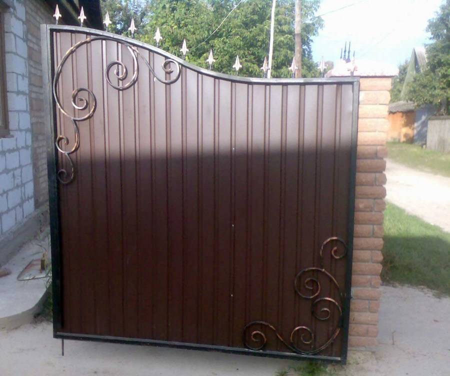 профнастила и декоративно украсить конструкцию, в результате чего въездная
