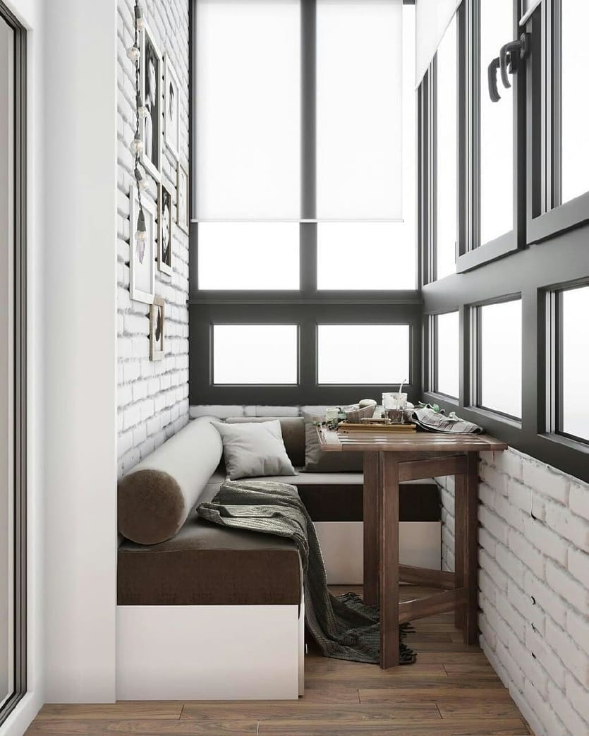 Балкон, оформленный в современном стиле, как правило имеет лаконичную отделку спокойных оттенков, простые формы.