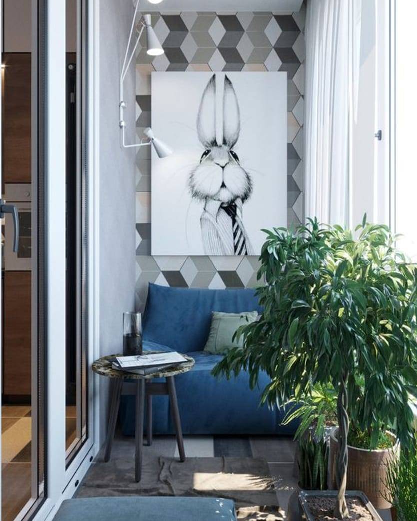Ощущение свежести морских просторов возникает при оформлении пространства лоджии с преобладанием оттенков синего цвета.