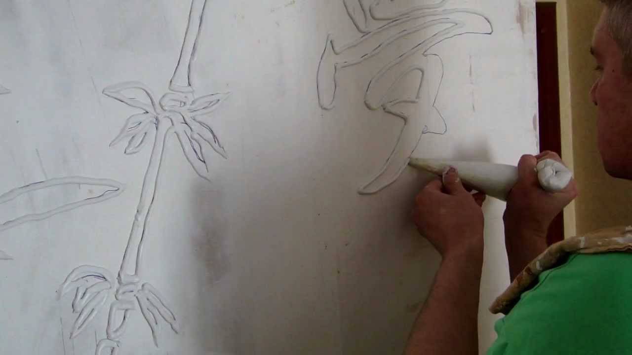 Изобразить картины на стене из шпаклевки можно не только перечисленными выше методами. Интересная альтернатива – лепнина при помощи кондитерского шприца. Основное достоинство способа – подробная детализация и возможность практически полного копирования мелких деталей с распечатки на шпаклёвочную плоскость.