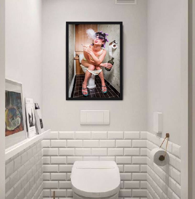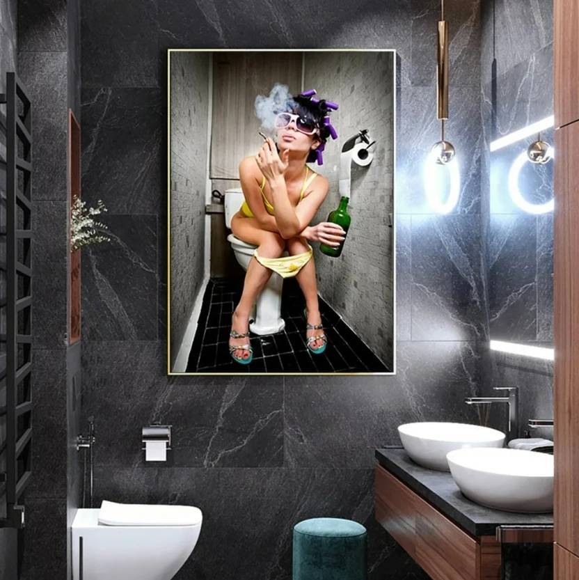 В комбинированном туалете с ванной можно развесить картины и постеры. В маленьком пространстве места для этих задумок, скорее всего, нет. Так что эти предметы декора лучше повесить на стенке над унитазом. Хорошо будет, если бочок вмонтирован в стену.