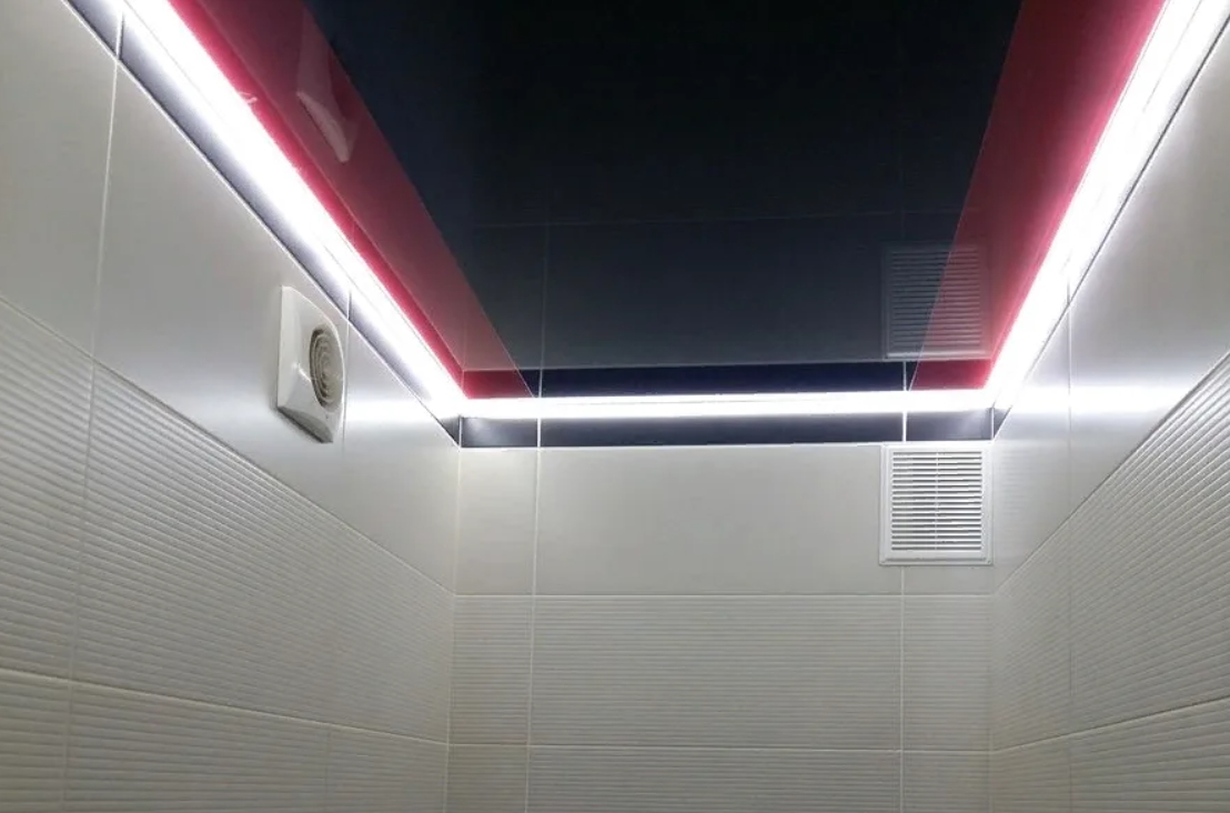 - Если натяжной потолок, то кафель должен быть на стенах и плитка на полу. Либо стены и пол – из пробки.