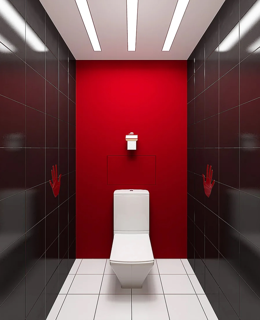 Чтобы сделать сантехнику в маленьком туалете менее заметной, оформите стены в том же цвете, что и сантехника: В этом случае ванная комната будет выглядеть более просторной.