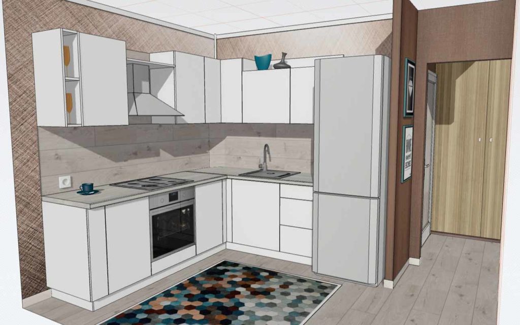 - Помимо удобства, потребуется просчитать каждое открытие/закрытие двери, шаг в кухне, чтобы в дальнейшем не столкнуться с незакрывающимися дверьми или другими неожиданностями. Такие ситуации типичны для неопытных проектировщиков.