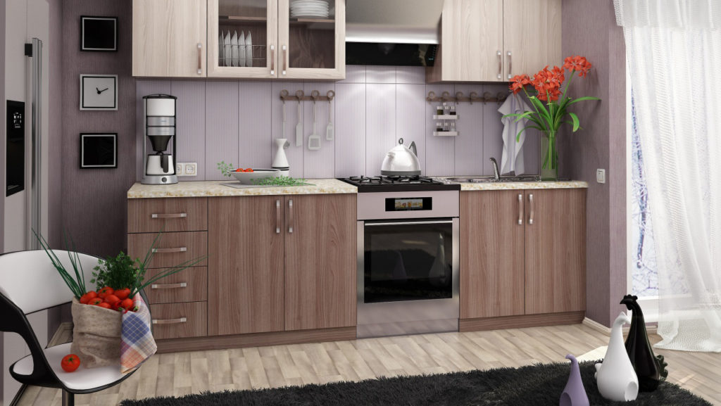 - Однорядная (линейная кухня) – для маленьких узких комнат, подходят для квартир-студий;