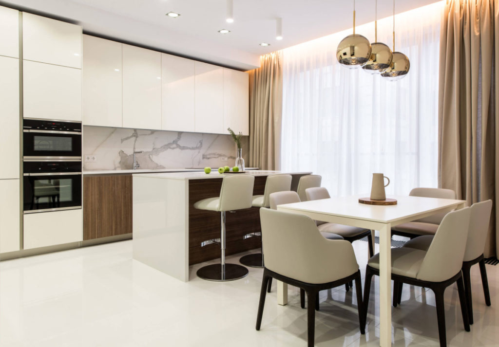 Для любителей статусных интерьеров прекрасным выбором является неоклассический дизайн кухни 2023.