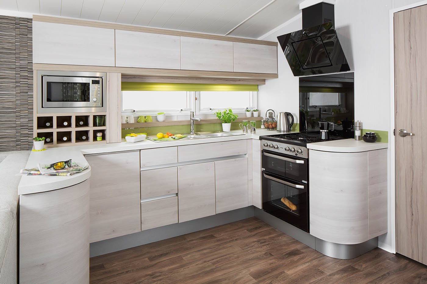 Изогнутые линии столешниц и ящиков, закругленные углы также нашли свое применение в сегодняшних кухонных гарнитурах. Это не только ультрасовременно, но и безопасно, особенно для маленьких детей.