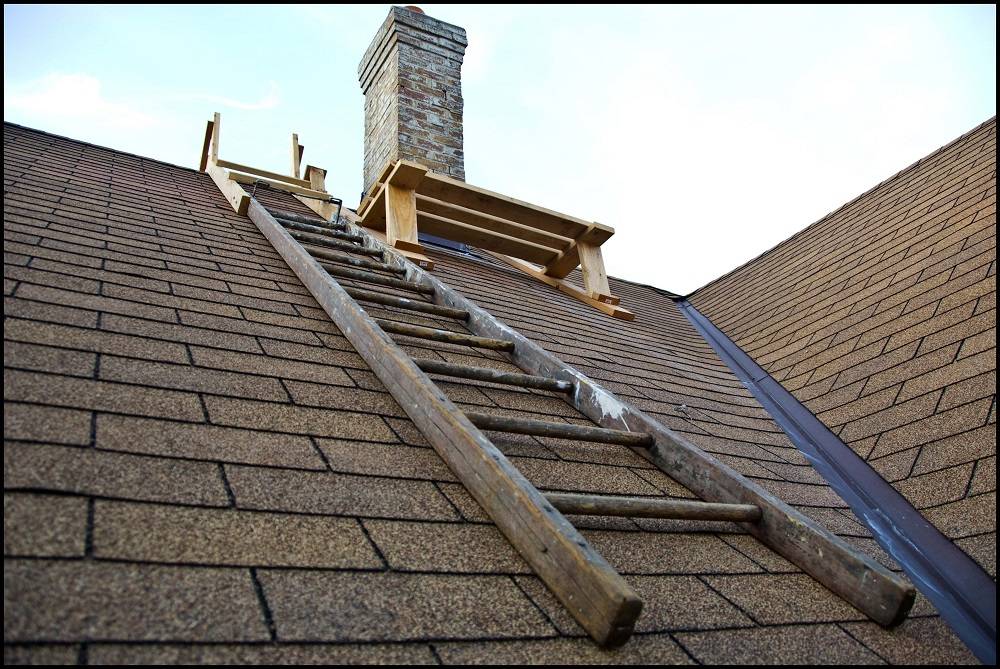 - разрабатывайте комфортную лестницу с учетом безопасности для кровельной поверхности во время ремонта различных типов крыши. Сохранить конструкцию, которая имеет двускатный уклон, поможет противовес из досок, закрепленный на крюках;