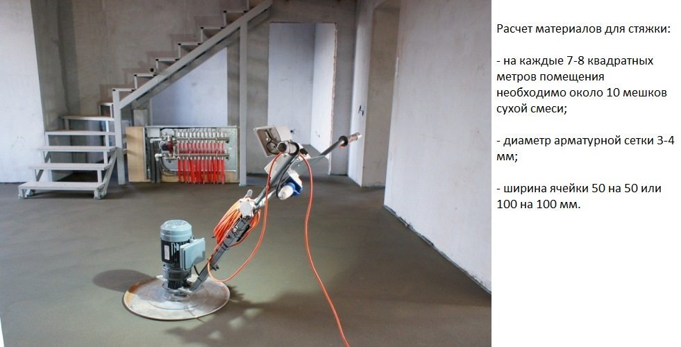 Очень сложно рассчитать материалы так, чтобы не пришлось потом докупать, и не переплачивать за остатки. В данном случае лучше обратиться к тому, кто уже заливал дома стяжку, спросить, сколько материала на какую площадь расходовалось. Опытные мастера уверяют, что 10-ти мешков готовой смеси (будь это цементный раствор или самовыравнивающаяся стяжка) полностью хватает для помещения, площадь которого не превышает 8-ми метров квадратных. Опять же, здесь нужно учитывать ещё и толщину стяжки, наличие или отсутствие дополнительных слоёв (гидроизоляция, теплоизоляция, коммуникационные сети).