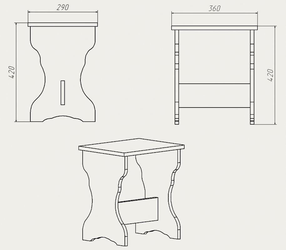 Первым делом составляем чертеж табурета – по нему мы в дальнейшем будем изготавливать все составляющие конструкции.