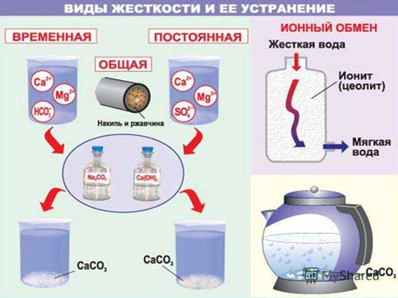Временная жесткость устраняется легко – кипячением воды, при котором растворенные в ней гидрокарбонаты превращаются в нерастворимые карбонаты и оседают в виде накипи. Для устранения постоянной жесткости используют химические методы, добавляя в воду реагенты, при реакции с которыми растворенные соединения дают осадок в виде нерастворимых карбонатов.
